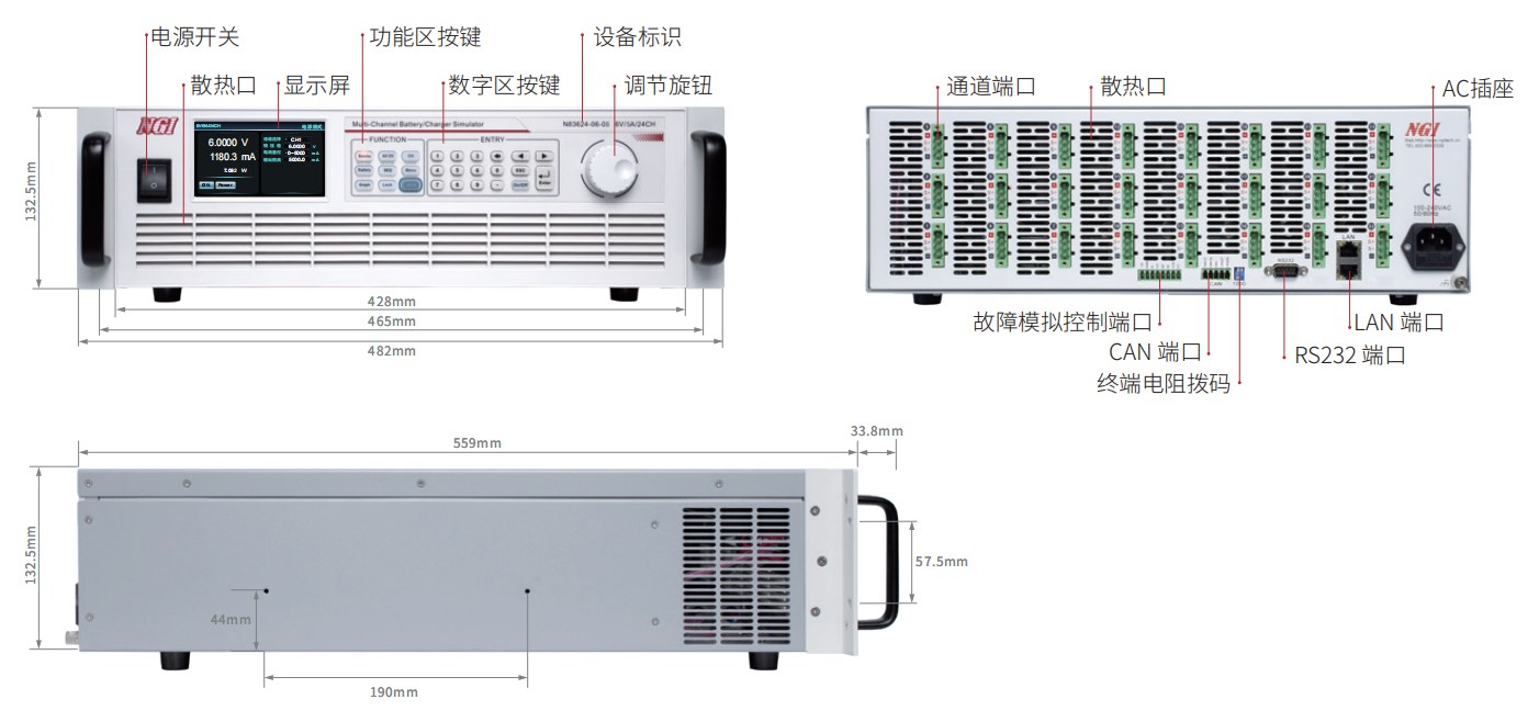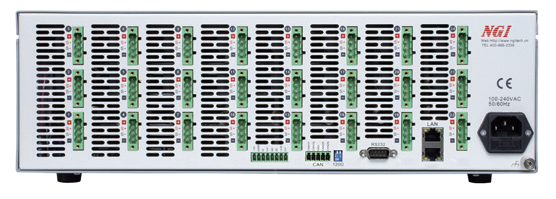 N83624在19英寸3U机箱内集成24个独立输出通道,通过选配NB108-2单体电池故障模拟器(如右图所示),可实现24通道内置正负极短路、正负极断路、极性反接模拟功能,支持本地/远程两种控制方式,在BMS测试中可省去模拟单体电池故障的外置矩阵开关部件,提高测试系统集成度和减少复杂繁琐的接线,为客户节省空间和降低成本。