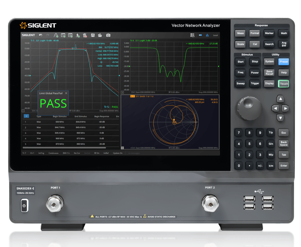 频率范围: 9 kHz- 26.5 GHz 输出功率设置范围: -40 dBm ~ 10 dBm 动态范围: 125 dB (typ) 支持 2端口 S参数测量、差分(平衡)测量、时域分析 支持端口阻抗转换、端口扩展、夹具仿真和去嵌入功能主要特性